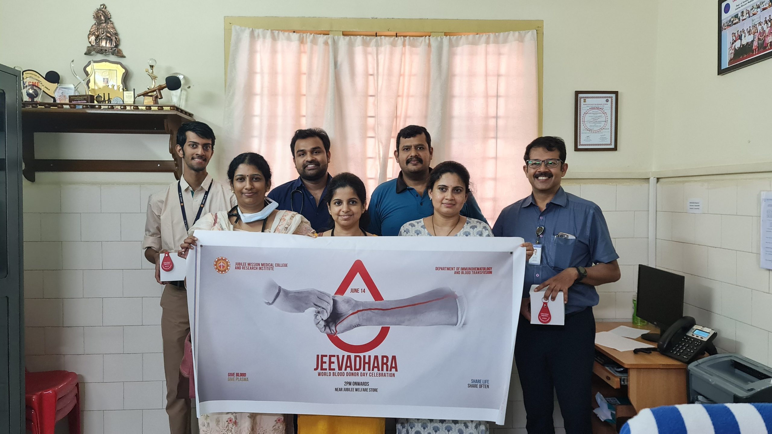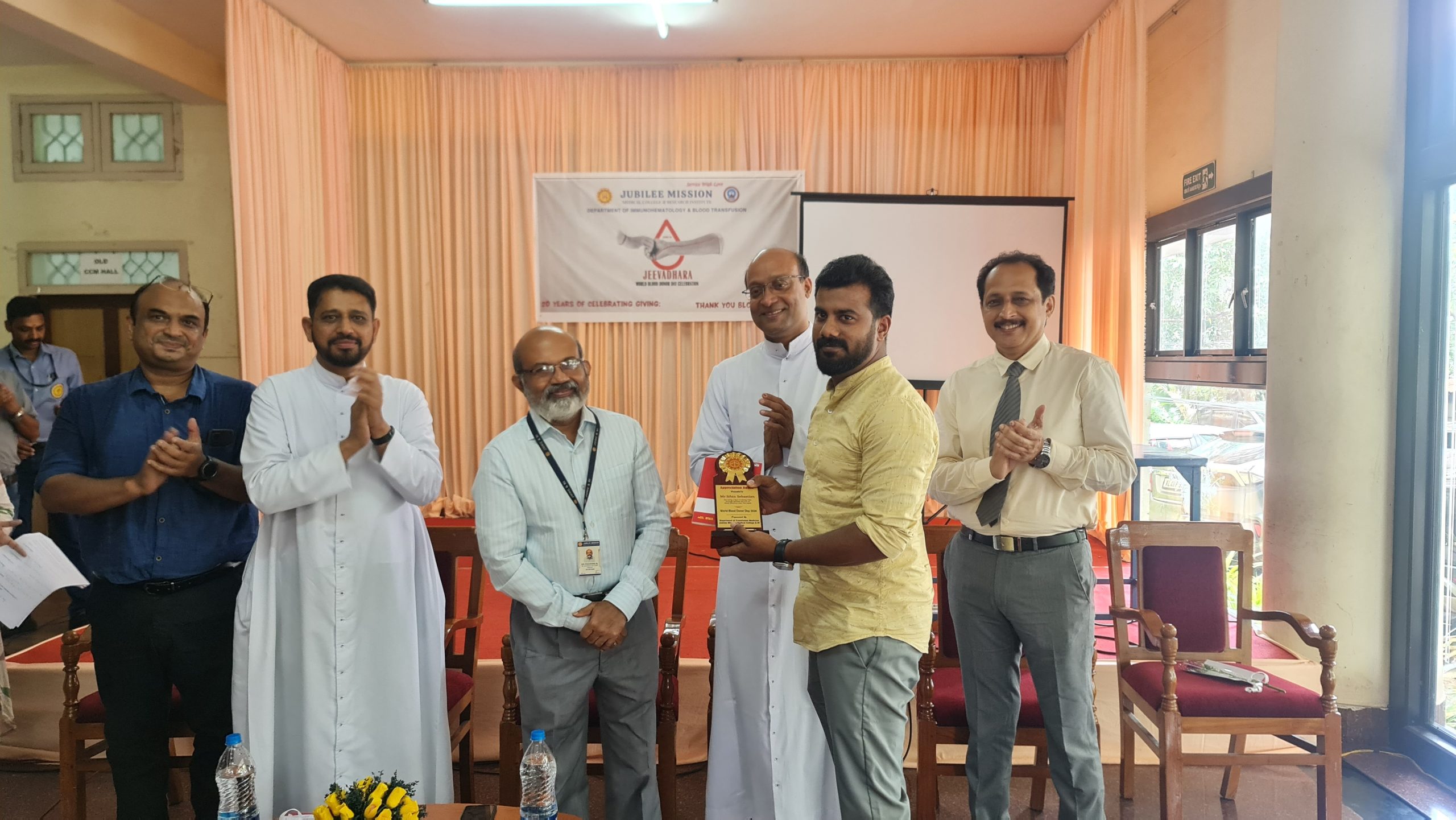 Voluntary Blood Donation :-Jubilee Mission Blood Centre has been recognized with a Certificate of Appreciation for conducting the maximum number of voluntary blood donation camps in the region. Building on this achievement, we aim to expand our outreach activities and secure additional recognition by enhancing the scale and quality of voluntary blood donation initiatives. We conduct annual programs to felicitate the routine and regular voluntary blood donors by the name – Jeevadhara.